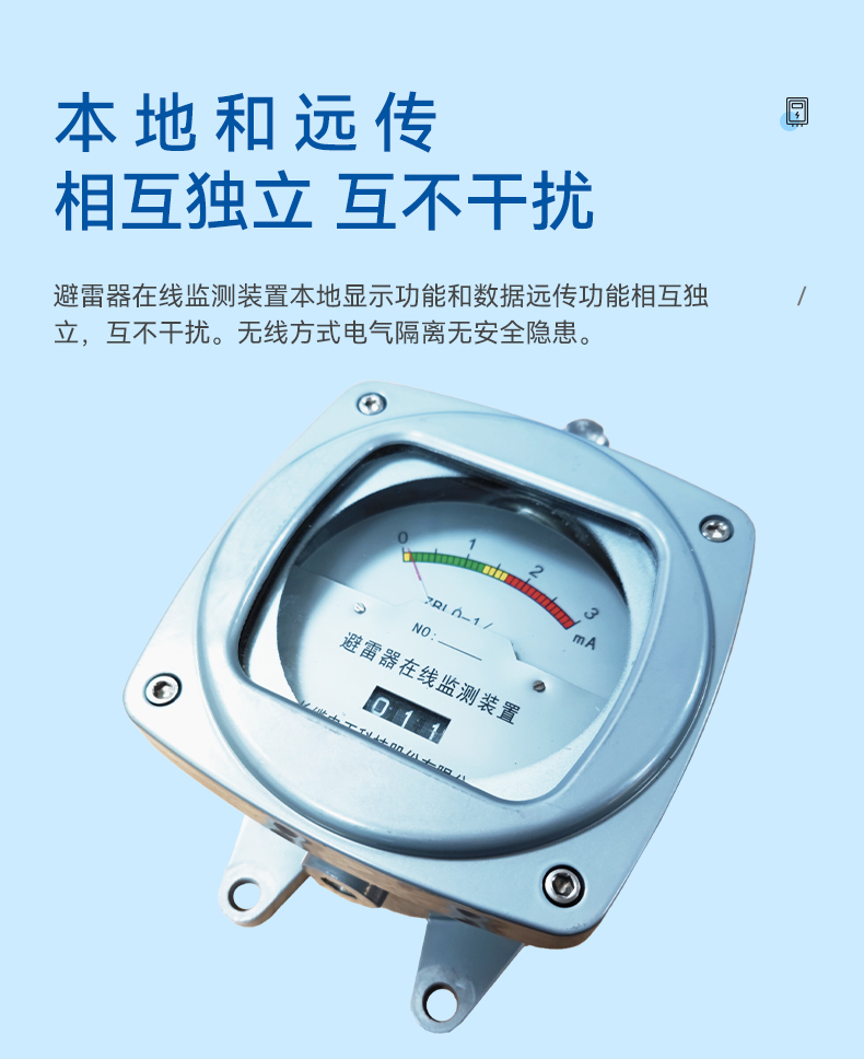 Ø 避雷器在线监测装置本地显示功能和数据远传功能相互独立,互不干扰。