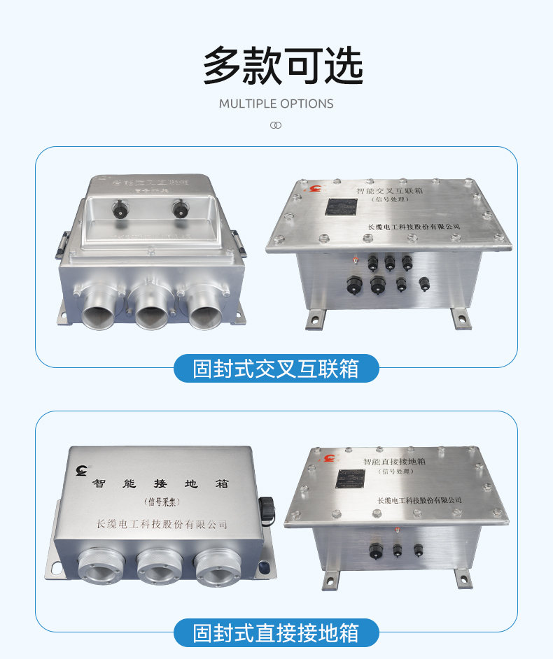 Ø小巧精致,信号采集箱(传统接地组件)、信号处理箱、取电组件分离,安装灵活性大,适合安装于电缆夹层、桥架、接头井等场合。
