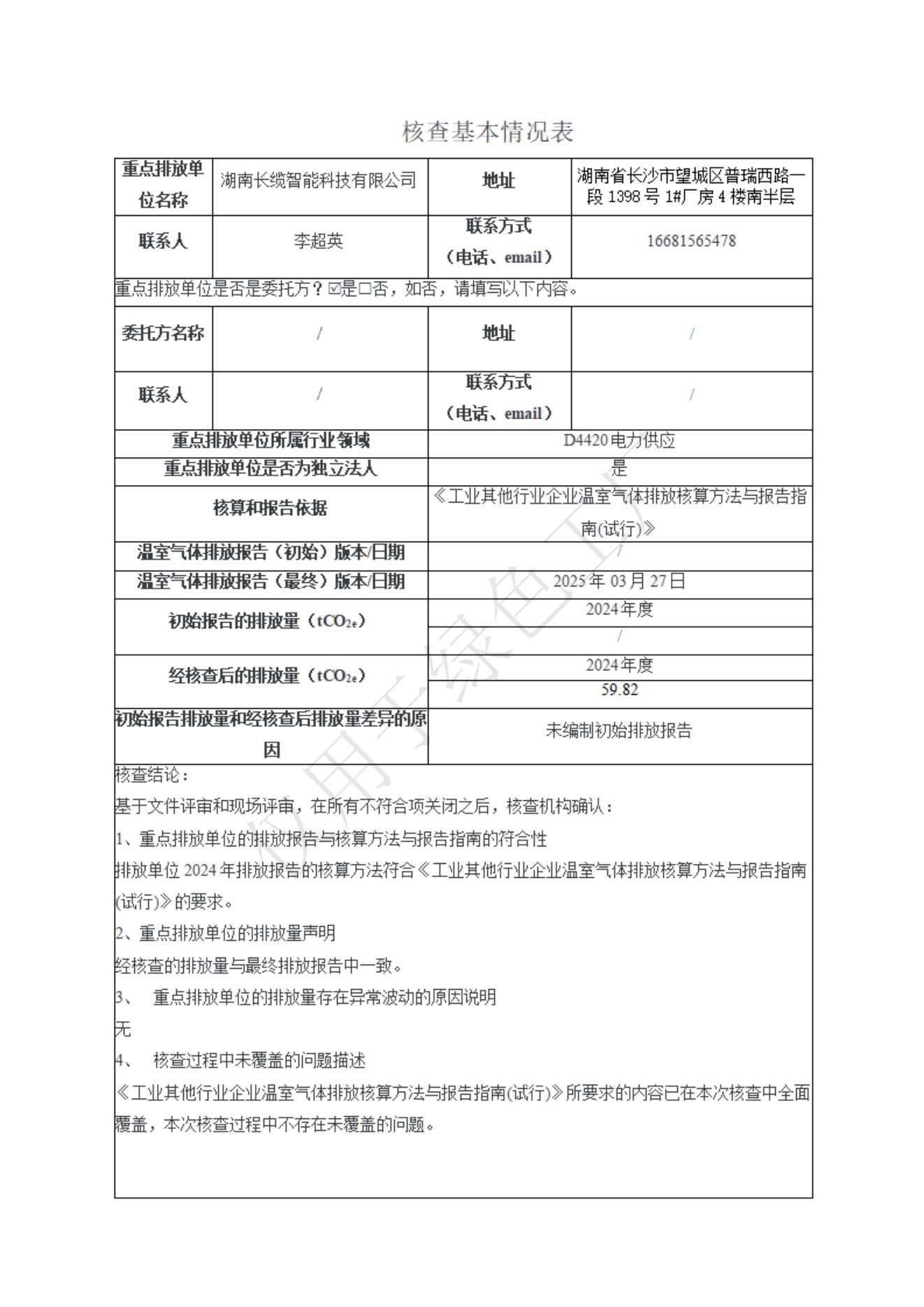 湖南合乐HL8智能科技有限公司2024年度温室气体排放核查报告信息公示