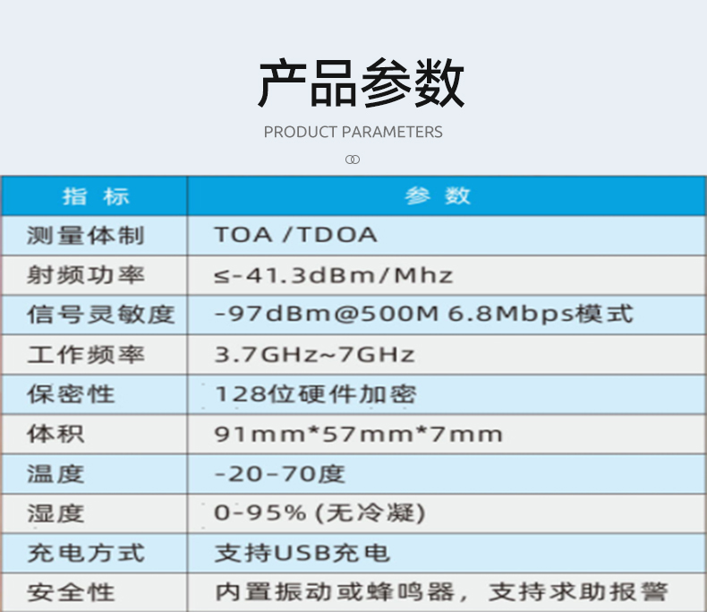 Ø 更高的定位精度,LOS平均精度优于30cm,NLOS平均精度优于50cm。
